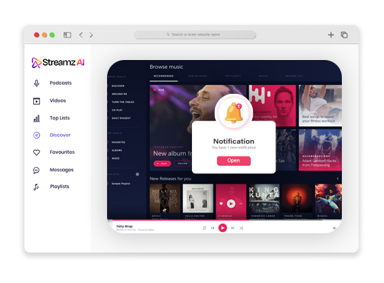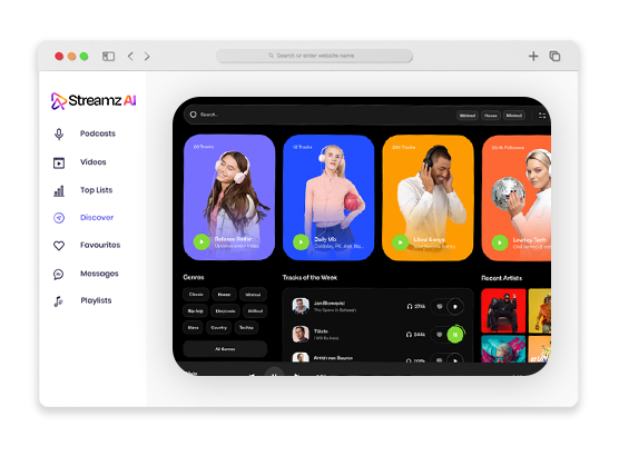 With Streamz AI, you can create your own “SPOTIFY” & “APPLE MUSIC”-like web streaming subscription services.